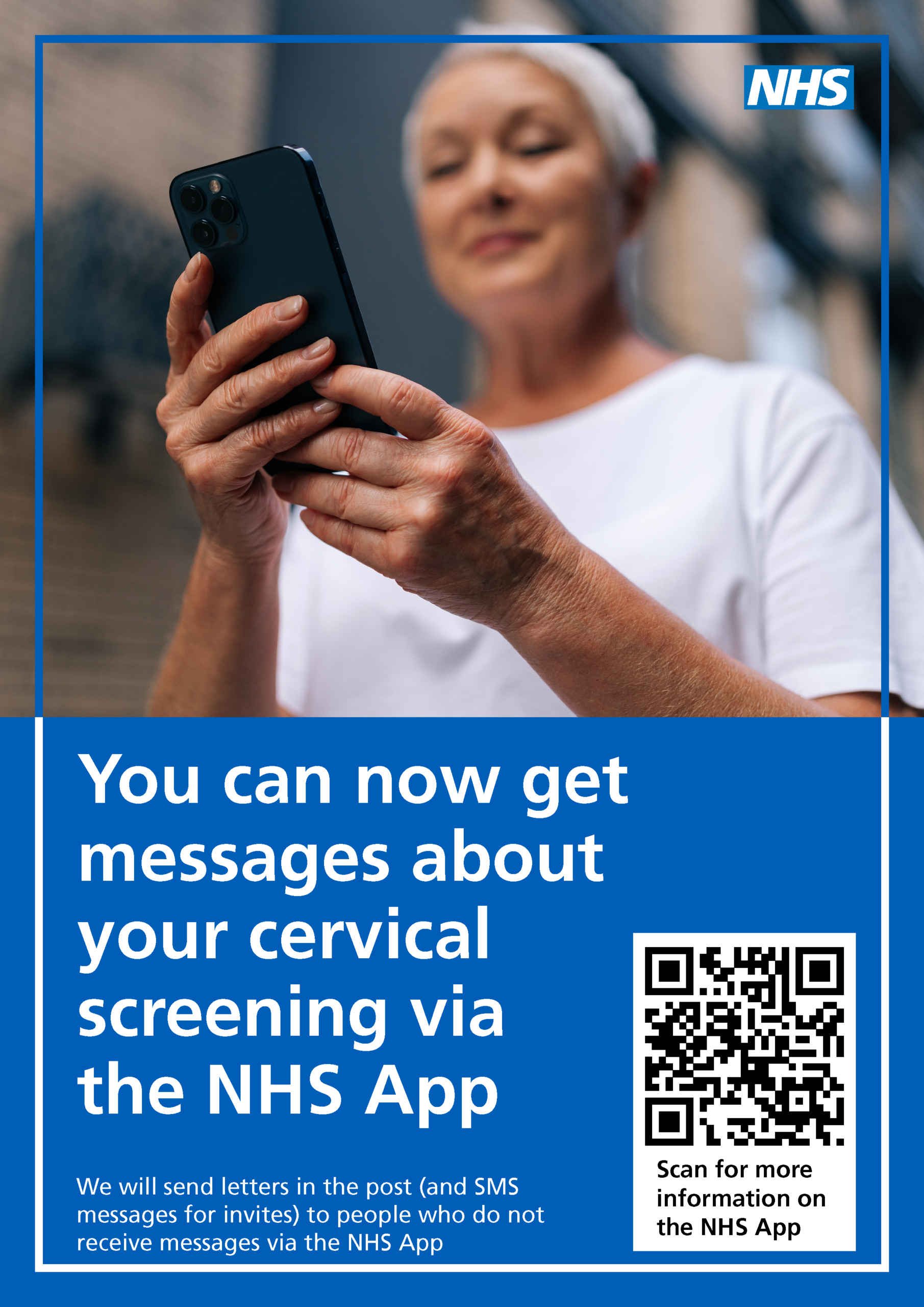 Your cervical screening invites and results will be sent to you through the NHS App. Then by text or by letter. Sometimes you may be asked to call the GP surgery to get your results.
