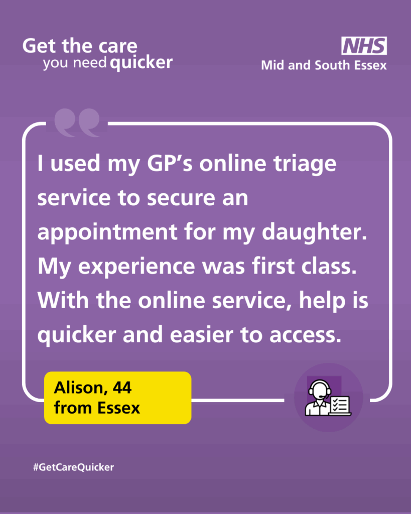 - Use our online consultation tool via your practice’s website or the NHS App.